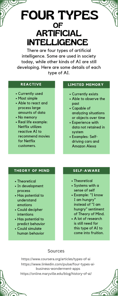 October 30, 2024May 30, 2025vmontesLeave a Comment on 4 Types of AI 4 Types of AI Share this: Click to share on X (Opens in new window) X Click to share on Facebook (Opens in new window) Facebook Click to email a link to a friend (Opens in new window) Email Like Loading... Related