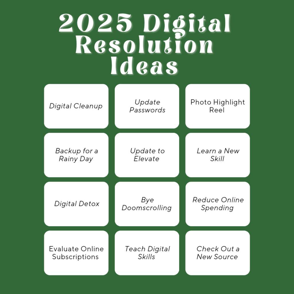 The start of a new year often has many thinking of possible resolutions to apply throughout the new year. Here are twelve digital resolution ideas to try if you want to shake up your digital routine! Feel free to implement one, or try a different one each month for the whole year!