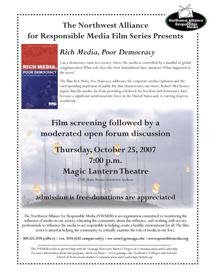 Join us twice a year for screenings of films that promote media literacy and bring up important topics of conversation regarding the media.